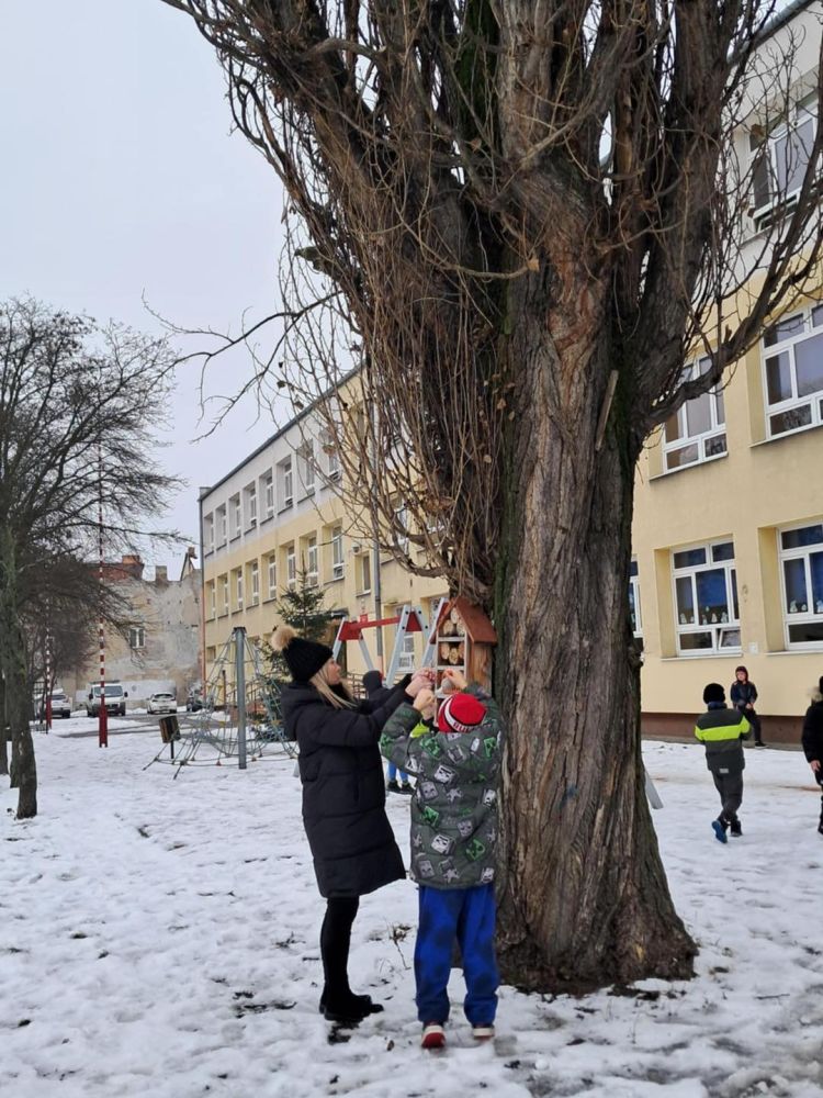 Piękna inicjatywa uczniów klas 4a i 4b wraz z wychowawcami Panią Roksaną Gołębiewską oraz Panią Kingą Krzemińską! Uczniowie klas 4a i 4b z własnej inicjatywy zebrali karmę dla ptaków – nasionka, słoninkę oraz inne ptasie przysmaki. Następnie wspólnie wybraliśmy się na teren wokół szkoły, aby zawiesić przygotowane pożywienie i pomóc skrzydlatym przyjaciołom przetrwać zimowy czas. Brawo za wrażliwość, zaangażowanie i chęć niesienia pomocy naturze!