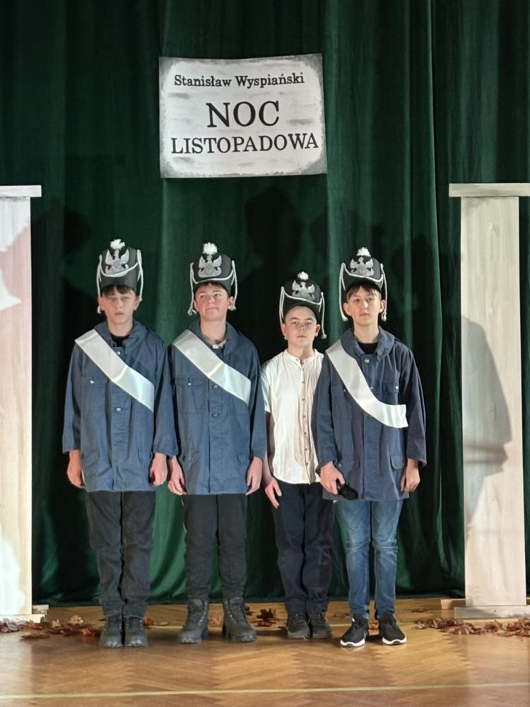 12 listopada w naszej szkole odbyły się uroczyste obchody 107. rocznicy odzyskania przez Polskę niepodległości. Był to wyjątkowy dzień, pełen refleksji nad historią naszego kraju, a także dumy z tego, że możemy żyć w wolnej Ojczyźnie. Z tej okazji Szkolne Koło Teatralne, powołane do życia we wrześniu bieżącego roku, przygotowało niezwykłą inscenizację na motywach dramatu Stanisława Wyspiańskiego pt. „Noc listopadowa”. Młodzi aktorzy z ogromnym zaangażowaniem i pasją wcielili się w bohaterów narodowego dramatu, oddając ducha tamtych wydarzeń i przypominając o znaczeniu wolności oraz poświęcenia dla ojczyzny. Występ został przyjęty przez publiczność z wielkim uznaniem i wzruszeniem. Cała społeczność szkolna miała okazję przeżyć lekcję historii w wyjątkowej, artystycznej formie. Serdecznie dziękujemy wszystkim uczniom i nauczycielom zaangażowanym w przygotowanie uroczystości oraz gratulujemy Szkolnemu Kołu Teatralnemu wspaniałego debiutu!