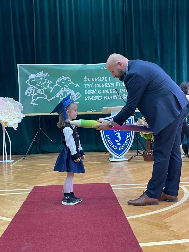 Dziś w Szkole Podstawowej nr 3 im. Mikołaja Kopernika odbyło się uroczyste pasowanie na pierwszaka. To wyjątkowy dzień dla najmłodszych uczniów, którzy oficjalnie zostali przyjęci do grona społeczności szkolnej. Podczas ceremonii dzieci zaprezentowały krótki program artystyczny, a następnie złożyły ślubowanie, obiecując pilnie się uczyć i być dobrymi kolegami. Dyrekcja szkoły dokonała symbolicznego pasowania, po którym pierwszoklasiści otrzymali pamiątkowe dyplomy i drobne upominki. Uroczystość przebiegła w radosnej, pełnej wzruszeń atmosferze, a na twarzach dzieci i rodziców gościł szeroki uśmiech.
