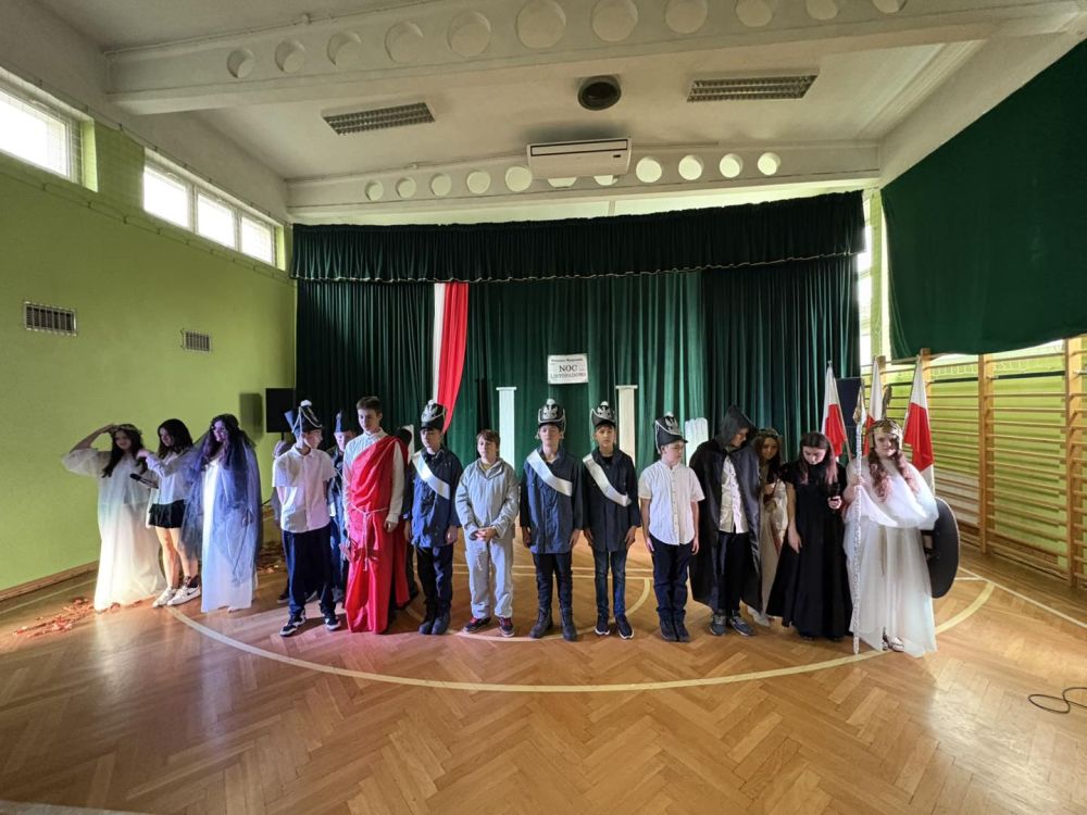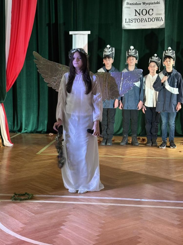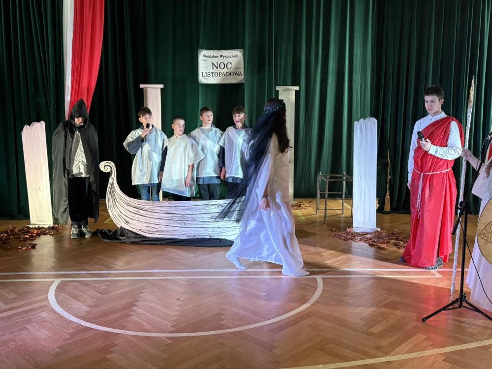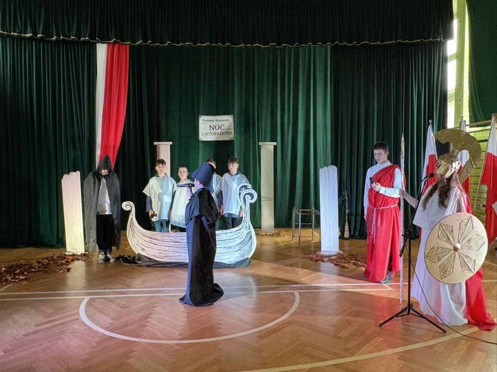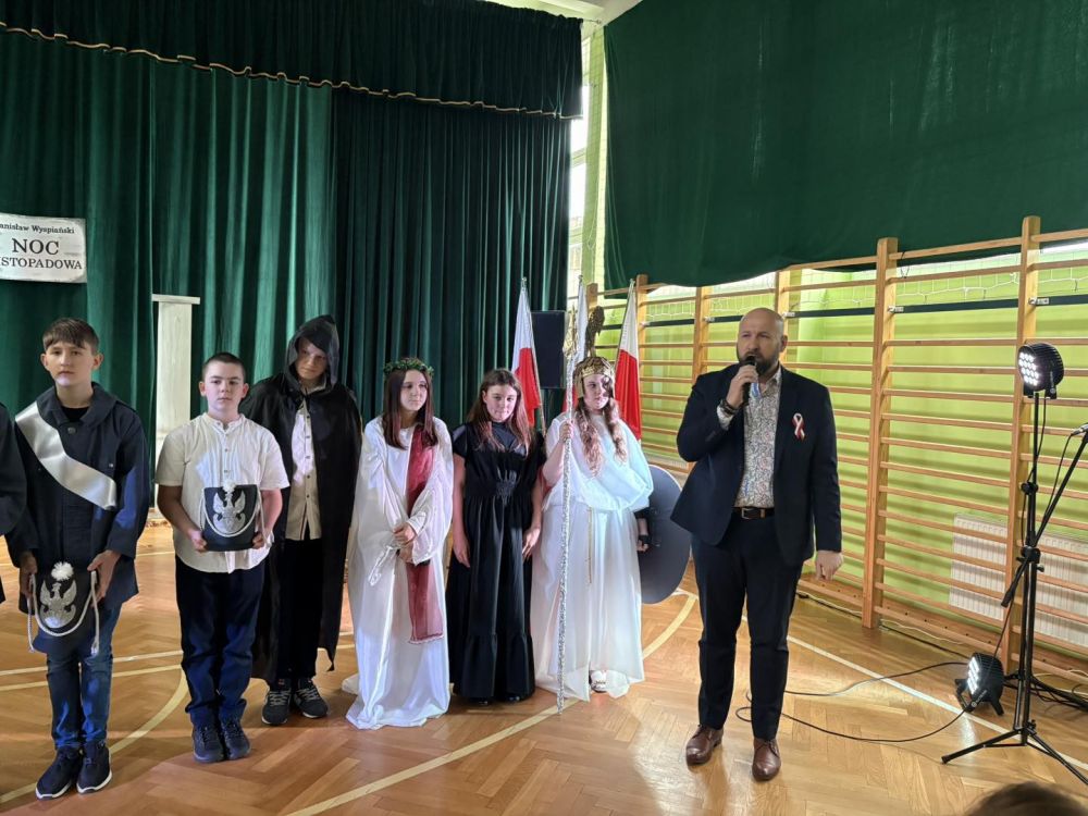 12 listopada w naszej szkole odbyły się uroczyste obchody 107. rocznicy odzyskania przez Polskę niepodległości. Był to wyjątkowy dzień, pełen refleksji nad historią naszego kraju, a także dumy z tego, że możemy żyć w wolnej Ojczyźnie. Z tej okazji Szkolne Koło Teatralne, powołane do życia we wrześniu bieżącego roku, przygotowało niezwykłą inscenizację na motywach dramatu Stanisława Wyspiańskiego pt. „Noc listopadowa”. Młodzi aktorzy z ogromnym zaangażowaniem i pasją wcielili się w bohaterów narodowego dramatu, oddając ducha tamtych wydarzeń i przypominając o znaczeniu wolności oraz poświęcenia dla ojczyzny. Występ został przyjęty przez publiczność z wielkim uznaniem i wzruszeniem. Cała społeczność szkolna miała okazję przeżyć lekcję historii w wyjątkowej, artystycznej formie. Serdecznie dziękujemy wszystkim uczniom i nauczycielom zaangażowanym w przygotowanie uroczystości oraz gratulujemy Szkolnemu Kołu Teatralnemu wspaniałego debiutu!