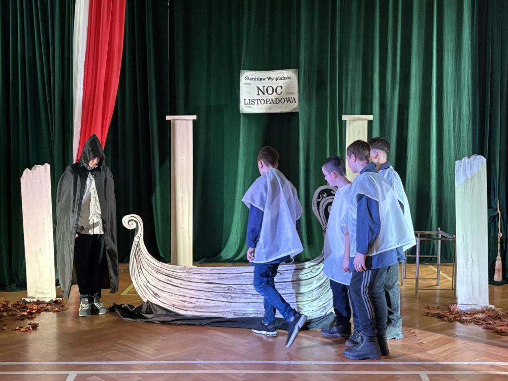 12 listopada w naszej szkole odbyły się uroczyste obchody 107. rocznicy odzyskania przez Polskę niepodległości. Był to wyjątkowy dzień, pełen refleksji nad historią naszego kraju, a także dumy z tego, że możemy żyć w wolnej Ojczyźnie. Z tej okazji Szkolne Koło Teatralne, powołane do życia we wrześniu bieżącego roku, przygotowało niezwykłą inscenizację na motywach dramatu Stanisława Wyspiańskiego pt. „Noc listopadowa”. Młodzi aktorzy z ogromnym zaangażowaniem i pasją wcielili się w bohaterów narodowego dramatu, oddając ducha tamtych wydarzeń i przypominając o znaczeniu wolności oraz poświęcenia dla ojczyzny. Występ został przyjęty przez publiczność z wielkim uznaniem i wzruszeniem. Cała społeczność szkolna miała okazję przeżyć lekcję historii w wyjątkowej, artystycznej formie. Serdecznie dziękujemy wszystkim uczniom i nauczycielom zaangażowanym w przygotowanie uroczystości oraz gratulujemy Szkolnemu Kołu Teatralnemu wspaniałego debiutu!