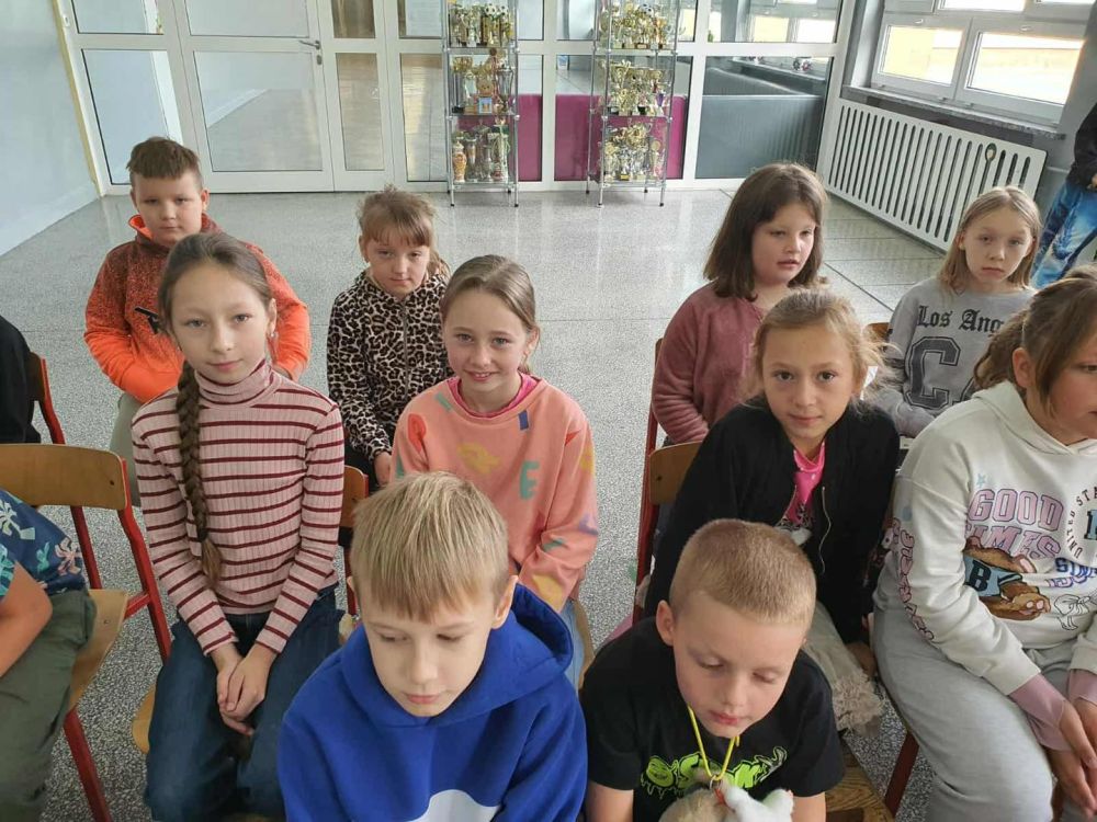Oddział zerowy przygotował niezwykły pokaz mody „Zaczarowana Jesień”, w którym dzieci zaprezentowały barwne stroje ozdobione liśćmi, kasztanami, dyniami i jarzębiną. Na widowni zasiedli uczniowie klas I–III, którzy z wielkim zainteresowaniem i radością podziwiali występy młodszych kolegów i koleżanek. Było to wyjątkowe i uroczyste powitanie nowej pory roku, pełne kolorów, uśmiechów i jesiennej magii. Dziękujemy dzieciom, wychowawcom i rodzicom za przygotowanie tego pięknego wydarzenia!