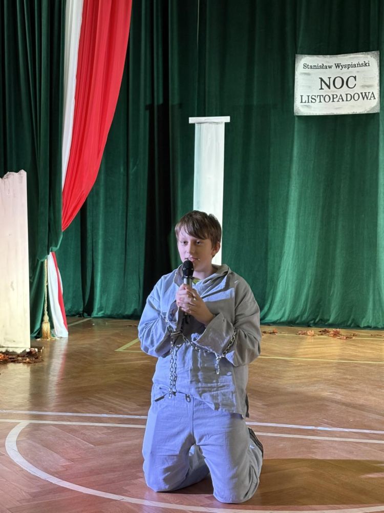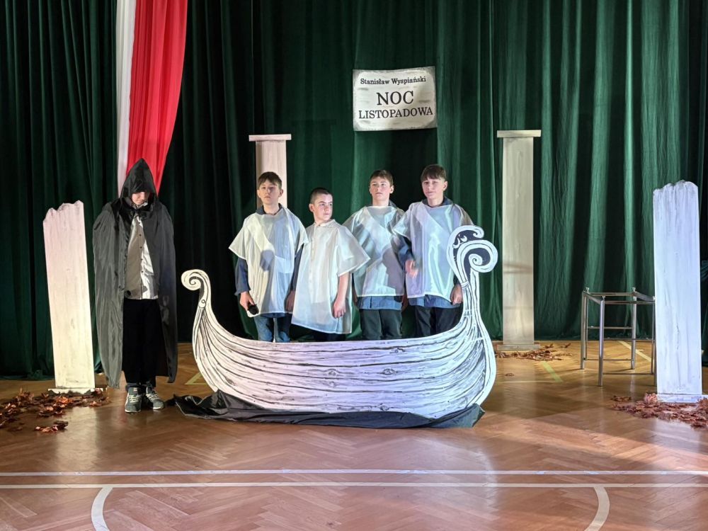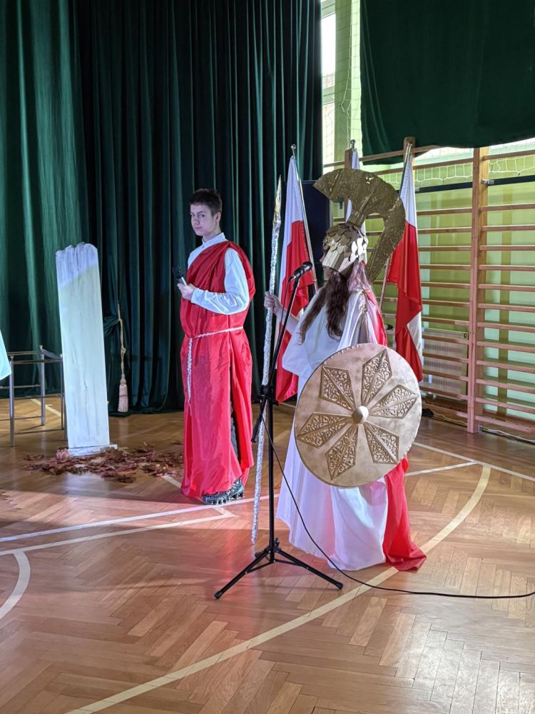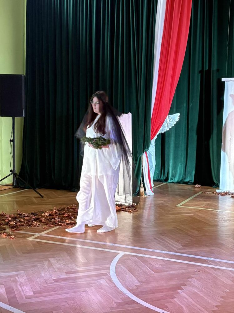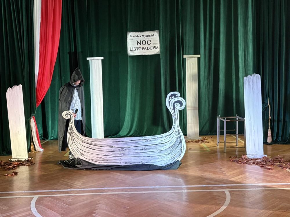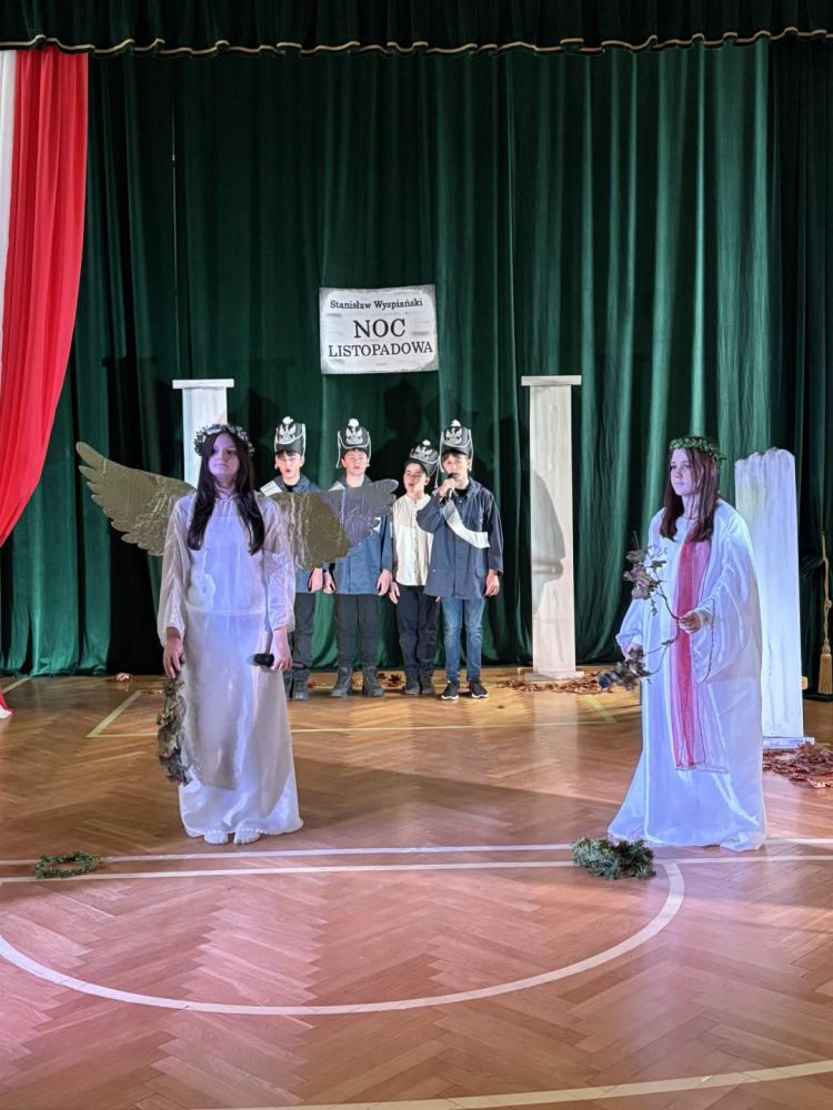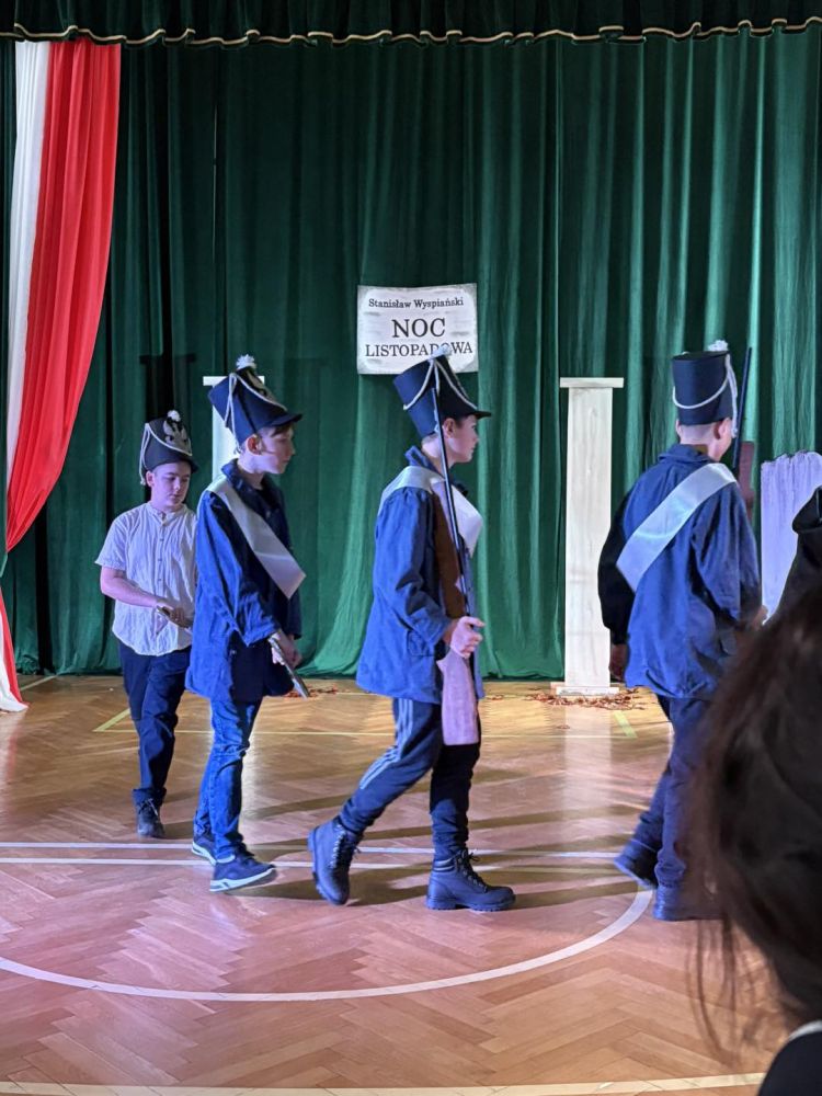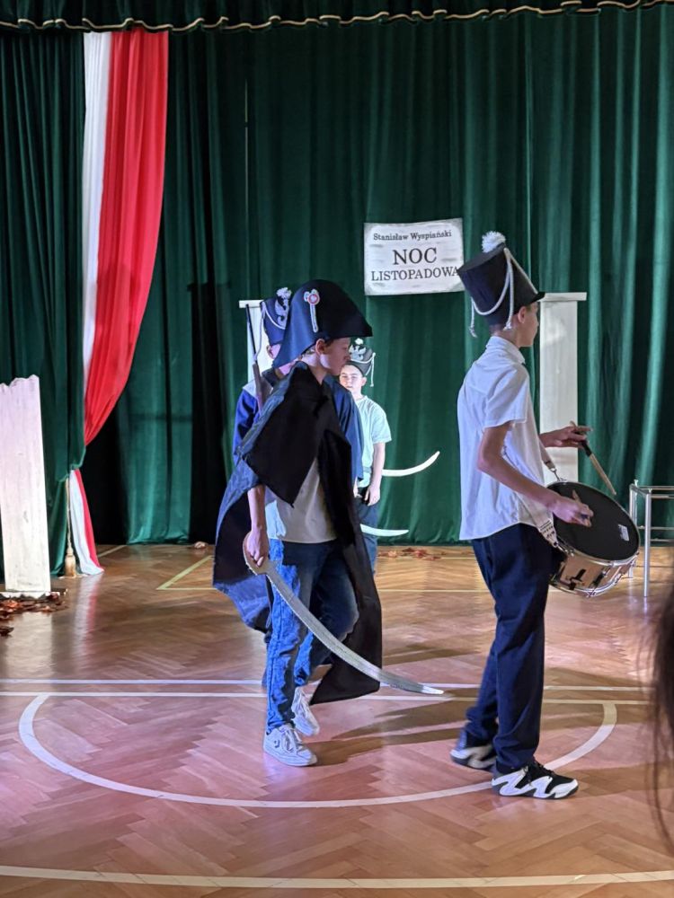 12 listopada w naszej szkole odbyły się uroczyste obchody 107. rocznicy odzyskania przez Polskę niepodległości. Był to wyjątkowy dzień, pełen refleksji nad historią naszego kraju, a także dumy z tego, że możemy żyć w wolnej Ojczyźnie. Z tej okazji Szkolne Koło Teatralne, powołane do życia we wrześniu bieżącego roku, przygotowało niezwykłą inscenizację na motywach dramatu Stanisława Wyspiańskiego pt. „Noc listopadowa”. Młodzi aktorzy z ogromnym zaangażowaniem i pasją wcielili się w bohaterów narodowego dramatu, oddając ducha tamtych wydarzeń i przypominając o znaczeniu wolności oraz poświęcenia dla ojczyzny. Występ został przyjęty przez publiczność z wielkim uznaniem i wzruszeniem. Cała społeczność szkolna miała okazję przeżyć lekcję historii w wyjątkowej, artystycznej formie. Serdecznie dziękujemy wszystkim uczniom i nauczycielom zaangażowanym w przygotowanie uroczystości oraz gratulujemy Szkolnemu Kołu Teatralnemu wspaniałego debiutu!