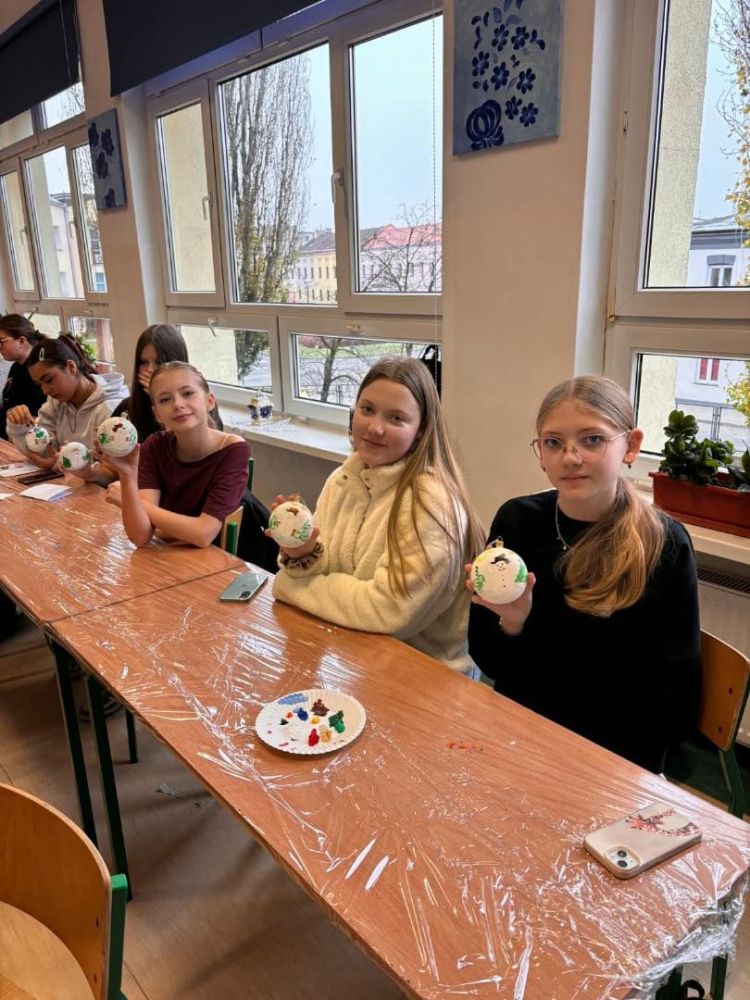 Dzisiejsze spotkanie z lokalną artystką, panią Krystyną Zagrabską, okazało się niezwykłą lekcją kreatywności, wrażliwości i przywiązania do regionalnych tradycji. Uczniowie z ogromnym zaangażowaniem malowali bombki oraz kartki świąteczne, ozdabiając je charakterystycznymi fajansowymi wzorami. Dzięki temu mogli odkryć piękno naszego lokalnego dziedzictwa i poczuć, jak blisko jest ono obecne w codziennym życiu.